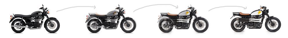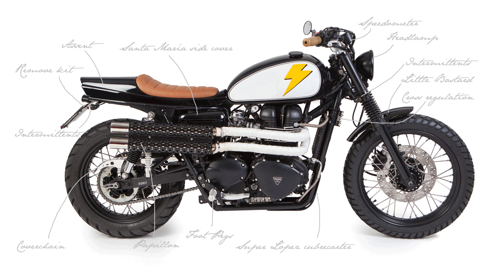 Triumph parts - Tamarit Motorcycles: Super López cubrecarter, coverchain, footrests, remove kit, little bastard, Moto Veloz dorsal, cross regulation, intermittents and rear intermittents